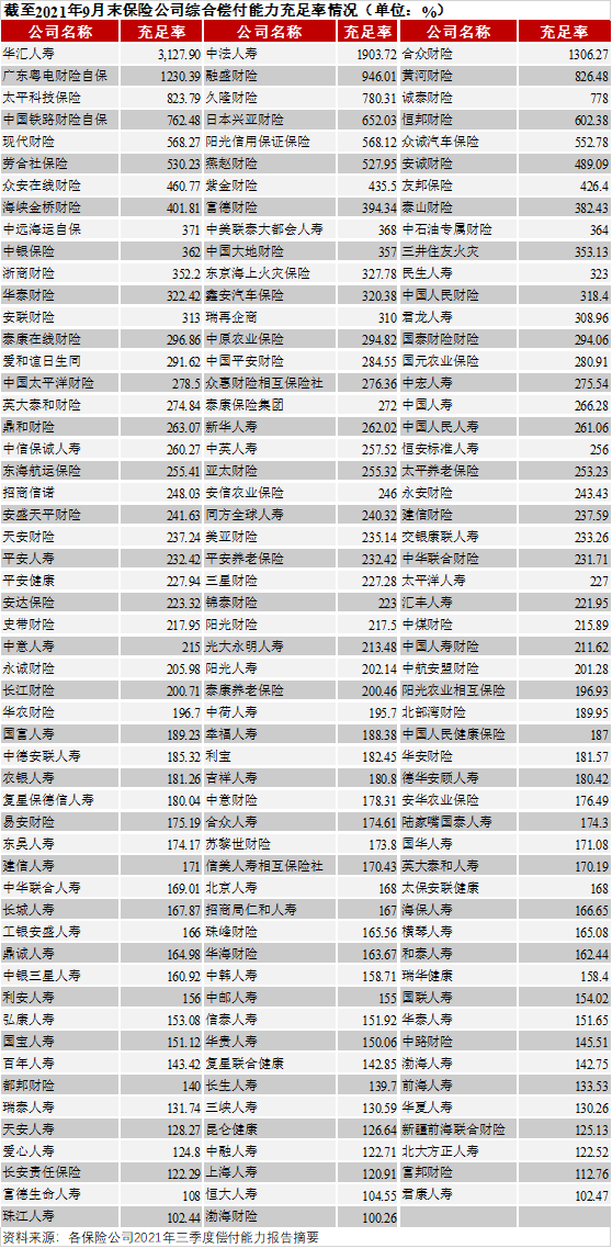 3、根據(jù)可查的161家保險公司披露的數(shù)據(jù),截至2021年9月末,保險公司償付能力充足率高于200%的有89家,高于120%但低于200%的有66家,低于120%的有6家。需要注意的是,多家成立時間較短或業(yè)務規(guī)模較小的保險公司,盡管其綜合償付能力充足率很高,但可能因為不具備監(jiān)管部門認可的信用風險管理能力,在投資非金融企業(yè)(公司)債券時仍對所投資債券有較高的外部信用評級要求;