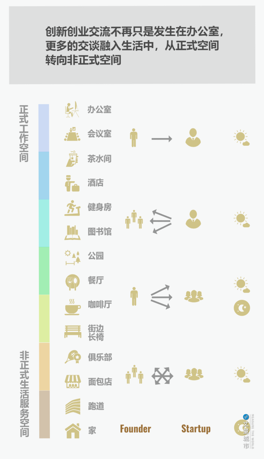 弱關(guān)系普遍發(fā)生在非正式的生活服務(wù)空間。所以集成各種多元生活服務(wù)場景的城市中心,無疑是搭接各種弱關(guān)系的樞紐。