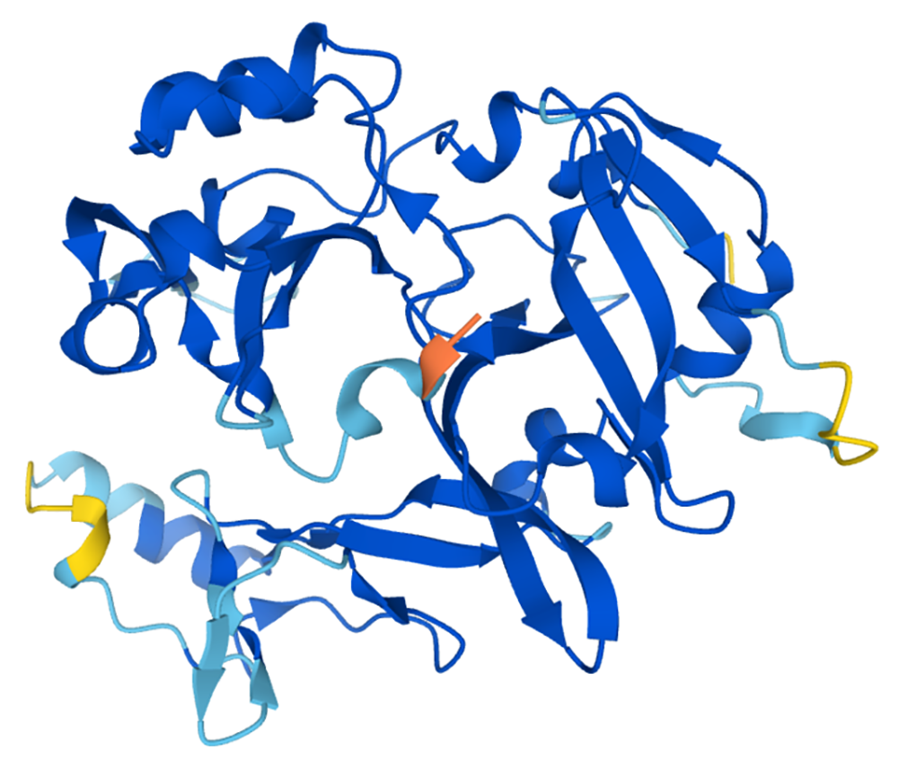 ▼ AlphaFold預(yù)測的蛋白質(zhì)3D結(jié)構(gòu)(來源:Wikipedia)