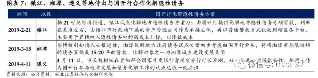 2019年以來,鎮江、湘潭、遵義等地先后傳出了通過國開行提供低息貸款置換的方式化解隱性債務的方案。