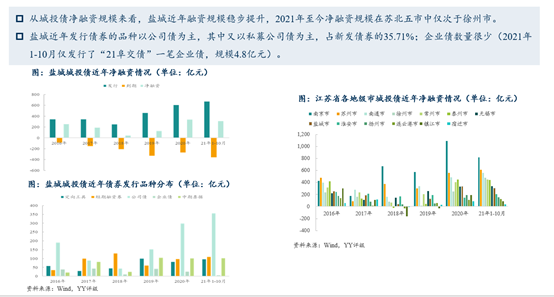 大家一直覺(jué)得鹽城發(fā)債比較困難,但其實(shí)最困難的18年(那時(shí)候疑似一些非市場(chǎng)化發(fā)行),但就算這樣,他的凈融資也是為正的,20年的融資增速斜率又上來(lái)了,融資額還是挺多的,整體來(lái)講它的一個(gè)融資規(guī)模其實(shí)都在攀升。