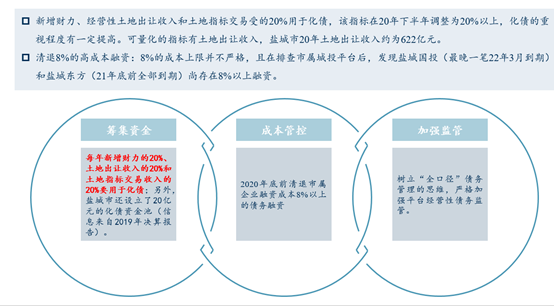 能夠感受到鹽城的財(cái)政自給率其實(shí)是有一點(diǎn)下降的,但是土地出讓收入,也就是整個(gè)基金收入其實(shí)上升特別明顯,20年相較于19年斜率上升的非常快。能夠發(fā)現(xiàn)當(dāng)?shù)匾驗(yàn)閭鶆?wù)的攀升,或者是其他資金運(yùn)作的問(wèn)題,對(duì)土地的透支還是比較明顯。
