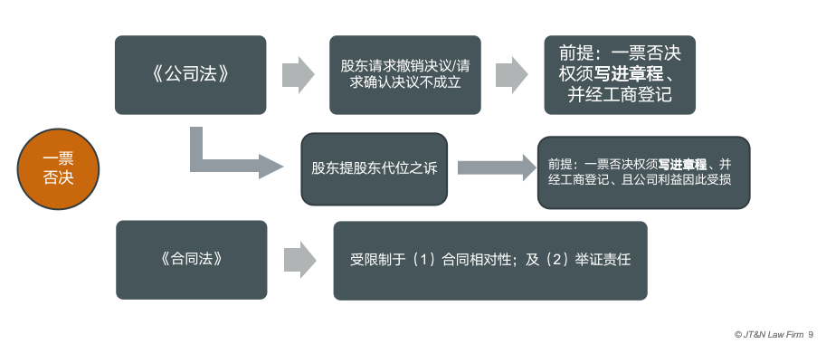 一票否決權的效力現(xiàn)狀,或曰其與中國目前法律體系的沖突我們整理如下圖: