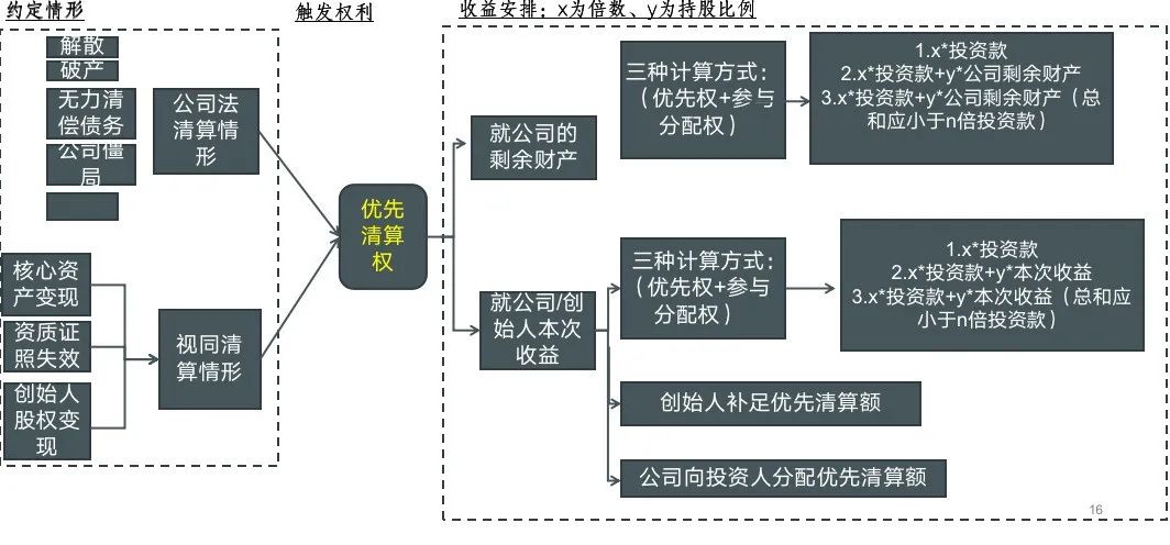 我們以該條款常用中文版本為基礎,將所有優(yōu)先清算權條款結構簡化如下:
