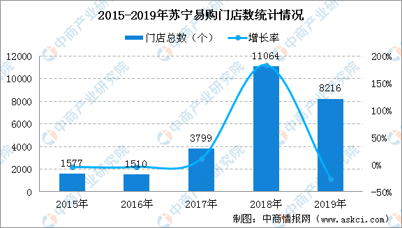 馬云的“新零售”原本計(jì)劃帶飛蘇寧的“智慧零售”。在合作后,蘇寧也的確一度將門店數(shù)量擴(kuò)增了300%,兩年間新開了9554家線下店。