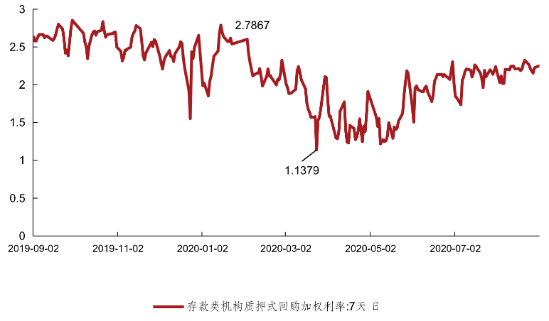 今年4月份以來,M2的規模逐步提升,至8月份已至213.7萬億的水平,基本達到央行的合意目標,因此貨幣政策轉向全面寬松的可能性不大。代表了金融機構資金拆入成本的R007(參與證券交易的機構投資者以利率債為質押的7天期回購利率)與商業銀行資金拆入成本的DR007(存款類機構間利率債質押的7天期回購利率)的逐步回升也從側面說明了這一點,央行秉承松緊適度的貨幣政策,如果貨幣流動性過于寬松就回適當調緊,目前商業銀行及其他金融機構的資金成本已不像數月前那么低,對于發債企業的收益率要求也會適當上調,經濟穩步復蘇的基調不會變,對于銀行的信貸投放力度的調控也會繼續。