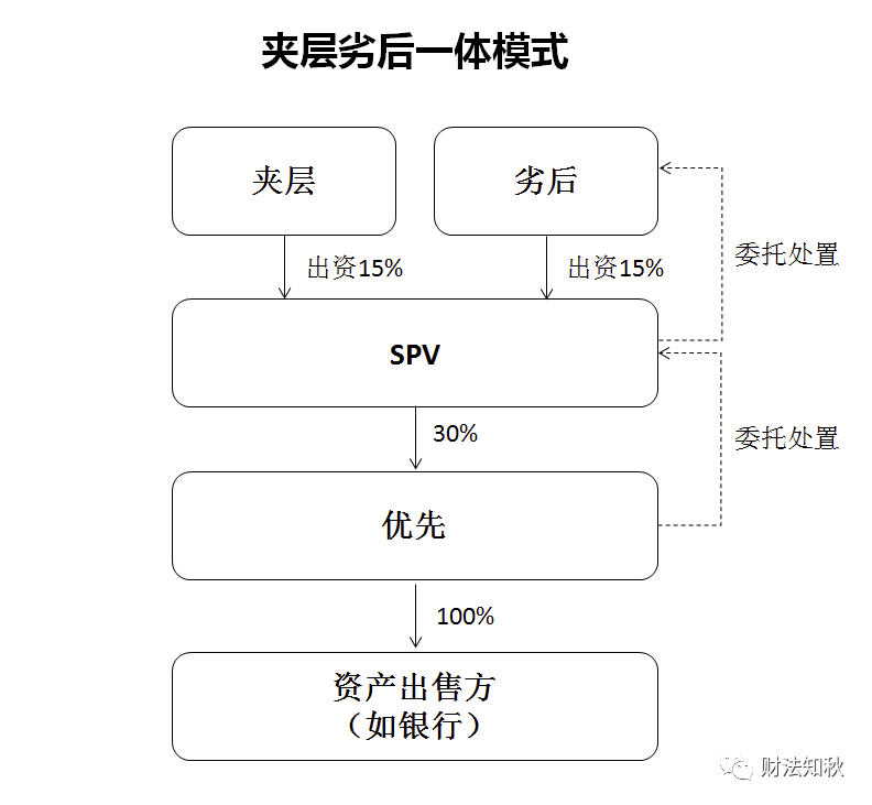 第一種:優先和夾層成立基金,劣后以保證金形式付給基金,基金去收購債權;劣后一旦違約,可能先直接被擦除掉出資,再虧損,就會虧到夾層本金;