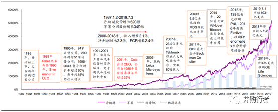 在過去的 30 多年中,丹納赫的股價(jià)變遷。超過蘋果、標(biāo)普500的增速: