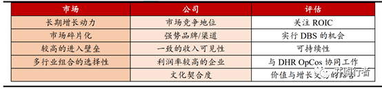 DBS與并購戰(zhàn)略:丹納赫制定并購戰(zhàn)略的過程實(shí)質(zhì)上是一個(gè) DBS過程,是一個(gè)遞進(jìn)式的過程,包括市場、公司、評(píng)估三大模塊。在并購?fù)瓿珊?,丹納赫利用 DBS 進(jìn)行整合,完成從優(yōu)秀到卓越的提升。在選擇市場時(shí),丹納赫偏愛市場碎片化、集中度比較低,競爭激烈程度不大,而且有未滿足客戶需求的市場機(jī)會(huì),同時(shí),競爭對手的發(fā)展也比較遲緩的領(lǐng)域,在篩選市場中的擬并購標(biāo)的時(shí),通常傾向于選擇企業(yè)管理上存在改善空間或者發(fā)展遇到瓶頸,未來可以其通過 DBS 系統(tǒng)加以改善,以及借助丹納赫平臺(tái)的渠道和資金實(shí)力,使得收購的企業(yè)獲得更大的發(fā)展空間的企業(yè)。同時(shí),被并購企業(yè)的管理層應(yīng)有豐富的運(yùn)營經(jīng)驗(yàn)和企業(yè)家精神,收購后丹納赫會(huì)盡可能保留原來的管理層和團(tuán)隊(duì),只在財(cái)務(wù)、管理、技術(shù)系統(tǒng)等層面上進(jìn)行融合。此外,選擇企業(yè)的時(shí)候,丹納赫還會(huì)考慮和現(xiàn)有平臺(tái)內(nèi)主要公司業(yè)務(wù)互補(bǔ),有協(xié)同效應(yīng),以及一定的行業(yè)周期互補(bǔ)。