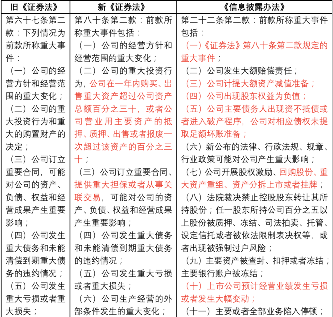 2)新法對(duì)“重大事件”披露制度進(jìn)行了哪些補(bǔ)充和完善?