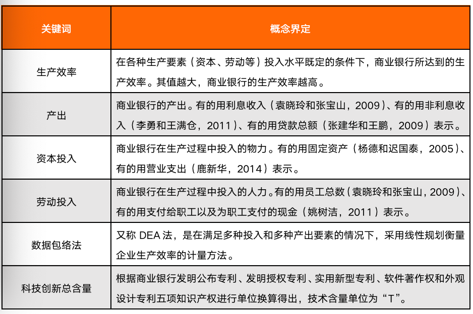 在測算銀行生產(chǎn)效率時,比較經(jīng)典的測算方法是數(shù)據(jù)包絡(luò)法(DEA法),該方法不對前沿生產(chǎn)函數(shù)中的具體參數(shù)形式進行估計,同時需要滿足多種投入和多種產(chǎn)出要素的條件,其測算的生產(chǎn)效率介于0到1之間。借鑒現(xiàn)有文獻指標選取的方法,本報告使用的指標情況如下表。本報告中各銀行的指標數(shù)據(jù)均來源于wind數(shù)據(jù)庫。