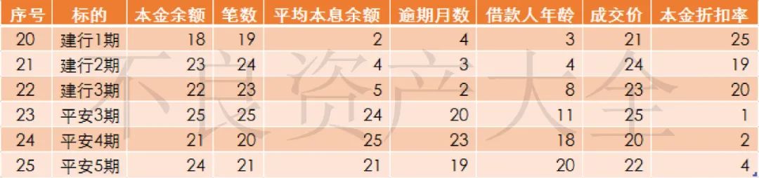 平安銀行的3期則延續了平安銀行薄利多銷的老傳統:高賬齡、高總額、低價格。其成交價格預估都在一折左右。