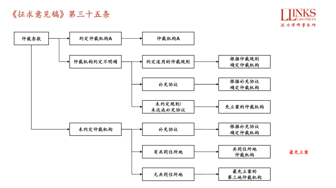 沒約定的, 共同住所地的仲裁機(jī)構(gòu)受理, 此處《征求意見稿》雖然沒有言明, 但對(duì)于北京、上海這類有多個(gè)仲裁機(jī)構(gòu)的城市, 其實(shí)依然暗含著最先立案的仲裁機(jī)構(gòu)受理的情況;