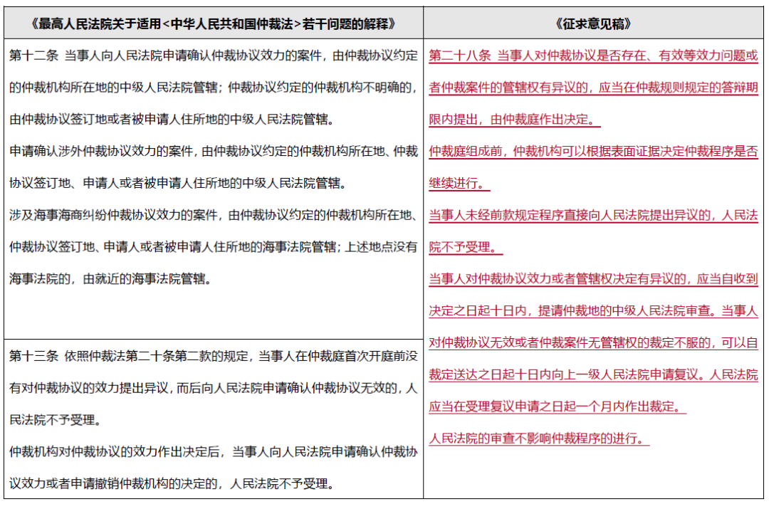 對(duì)比《最高人民法院關(guān)于適用<中華人民共和國(guó)仲裁法>若干問(wèn)題的解釋》(“《仲裁司法解釋》”)和《征求意見稿》就可以發(fā)現(xiàn), 《征求意見稿》對(duì)現(xiàn)行制度的修改包括: