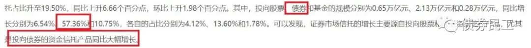 2021年12月1日,中國信托業協會公布了2021年3季度末信托公司主要業務數據。債券民工關注到了一個數據,信托產品投向債券的規模為2.13萬億元,同比增長分別為57.36%!這個增長速率高的有點嚇人。