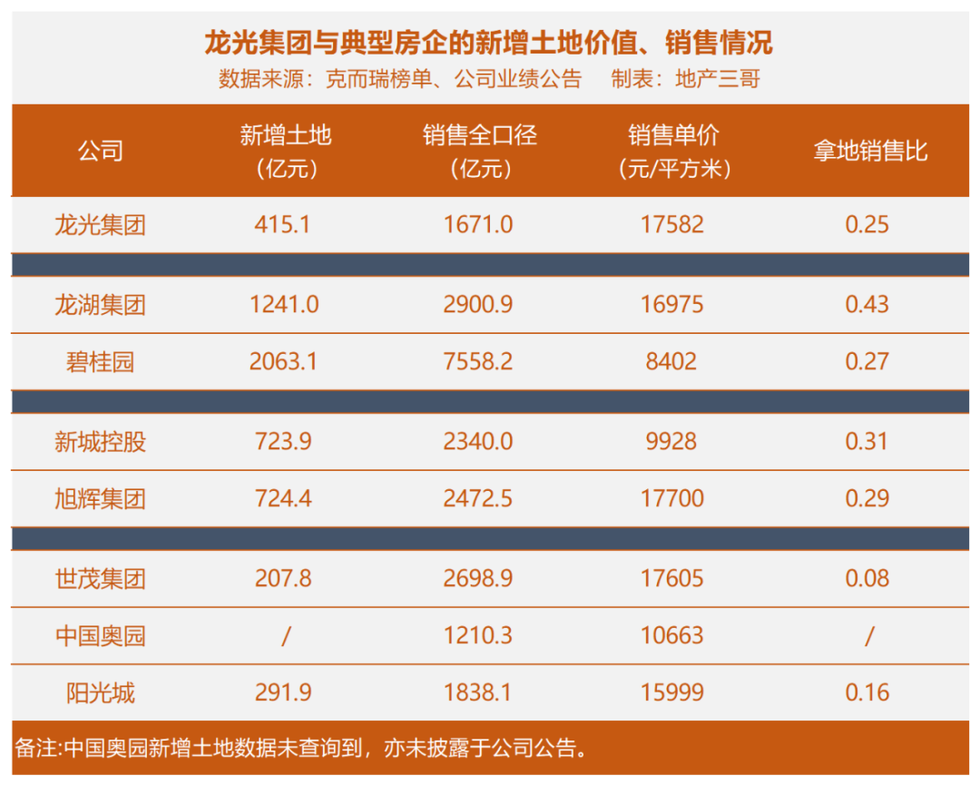 從2021年拿地情況來看,龍光似乎并不緊張。