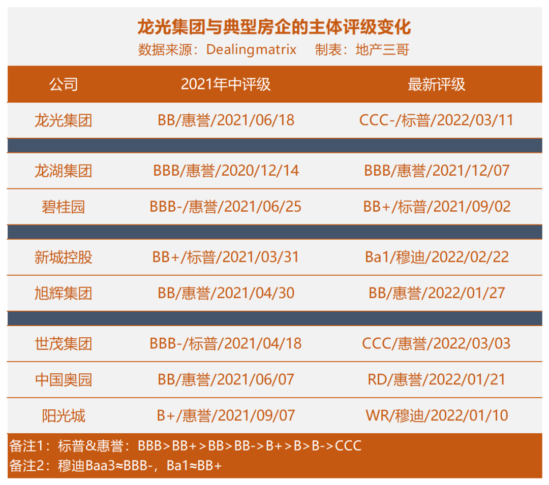 如果單看2021年中的評級,出問題怎么也不能輪到世茂集團和龍光集團: