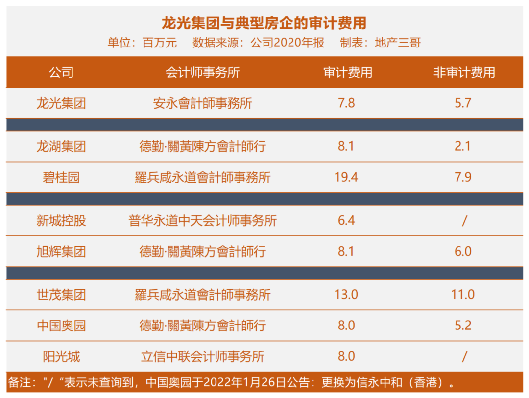 從上表中的審計機構和費用的角度,筆者不認為這里存在房企暴雷或者違約的線索。
