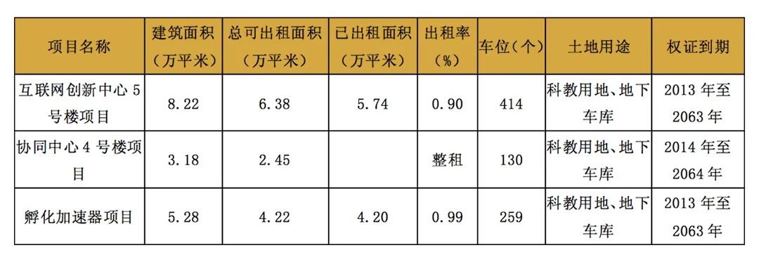根據戴德梁行出具的估值報告,于2021年6月30日,標的基礎設施項目中互聯網創新中心5號樓、協同中心4號樓及孵化加速器估值分別為15.48億元、7.12億元及8.13億元。