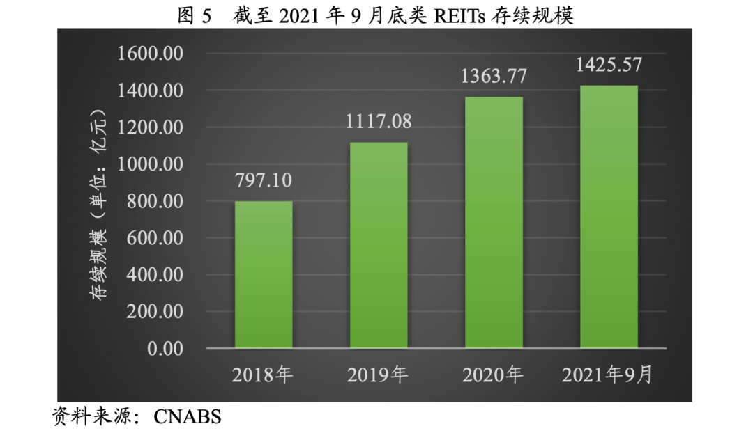 類REITs通常以私募基金份額或信托收益為基礎資產,以運營收入和物業增值為現金流來源,專項計劃通過持有私募基金份額而間接控制項目公司股權及物業所有權。截至2021年9月底,房企類REITs存續規模1425.57億元,其中前三大房企(光大嘉寶股份有限公司、首創置業股份有限公司和深圳市益田集團股份有限公司)存續金額分別為89.20億元、68.47億元和68.00億元。由于類REITs底層標的物業所有權發生轉移,因此存在出表的可能性,是否出表主要看房企是否擁有對SPV的控制權,是否享有可變現回報。發生以下幾類情況可能會對類REITs項目出表產生障礙:(1)房企持有次級比例較高;(2)房企作為物業管理人或資產服務機構,實際進行運營和管理,即未真實出售;(3)房企提供較強增信措施;(4)房企享有按固定價格回購底層資產的優先收購權。若不出表,則為新增有息負債,賬務處理上,與CMBS處理方式一致。若認定為出表,則賬務處理上終止確認投資性房地產或長期股權投資,此時凈負債率下降,現金短期債務比上升,進一步優化報表。