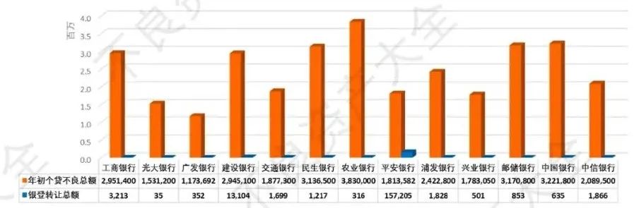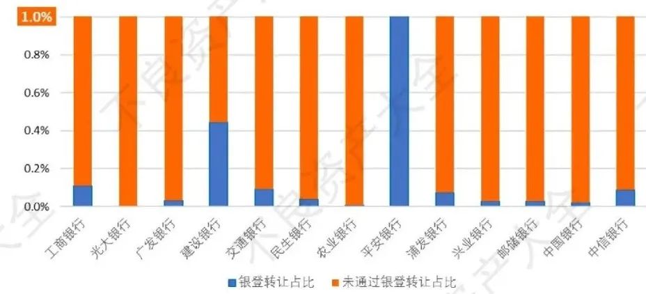 各銀行通過銀登中心批轉的個貸不良占其2021年初個貸不良余額的比例