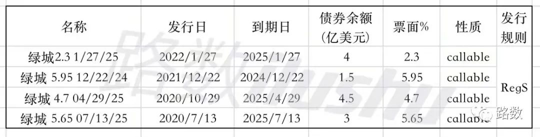 綠城目前存續的境外美元債僅有4筆,不存在回售壓力,到期時間也比較靠后。▼