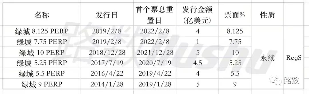 綠城歷史上所有的境外永續債都是在首個票息重置日時實現贖回。
