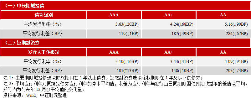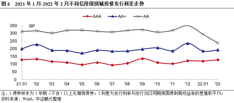 6. 1-2月份城投債發行利率全線下行,除短期限AAA級利差擴大外,其余利差均收窄
