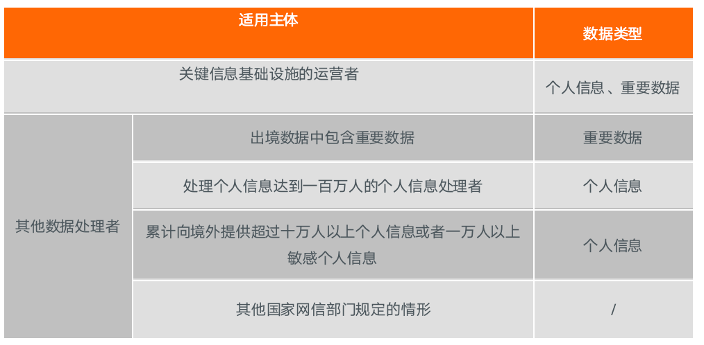 表:重要數(shù)據(jù)和個人信息的出境監(jiān)管制度