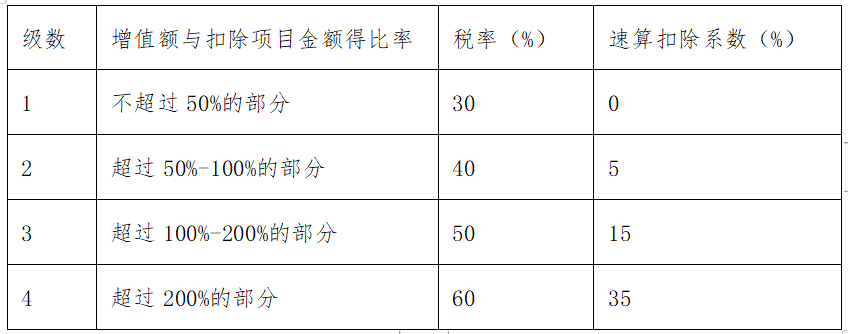 =增值額×適用稅率-扣除項目金額×速算扣除系數