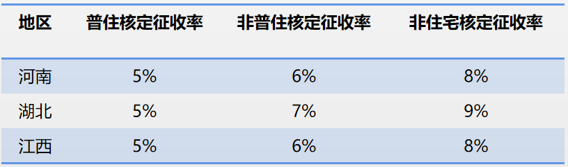 核定征收率原則上不得低于5%,各省級稅務機關結合本地實際,區分不同房地產類型制定核定征收率。