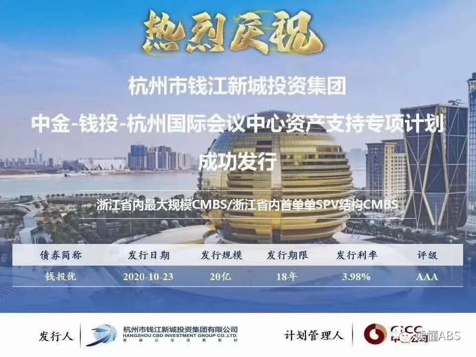 杭州國(guó)際會(huì)議中心CMBS發(fā)行人杭州市錢(qián)江新城投資集團(tuán)有限公司,是杭州市屬大型國(guó)有企業(yè)和錢(qián)江新城、城東新城、亞運(yùn)村建設(shè)開(kāi)發(fā)主體單位。企業(yè)最新評(píng)級(jí)AAA,截止2019年末,企業(yè)總資產(chǎn)511.29億元。負(fù)債率65.58%。