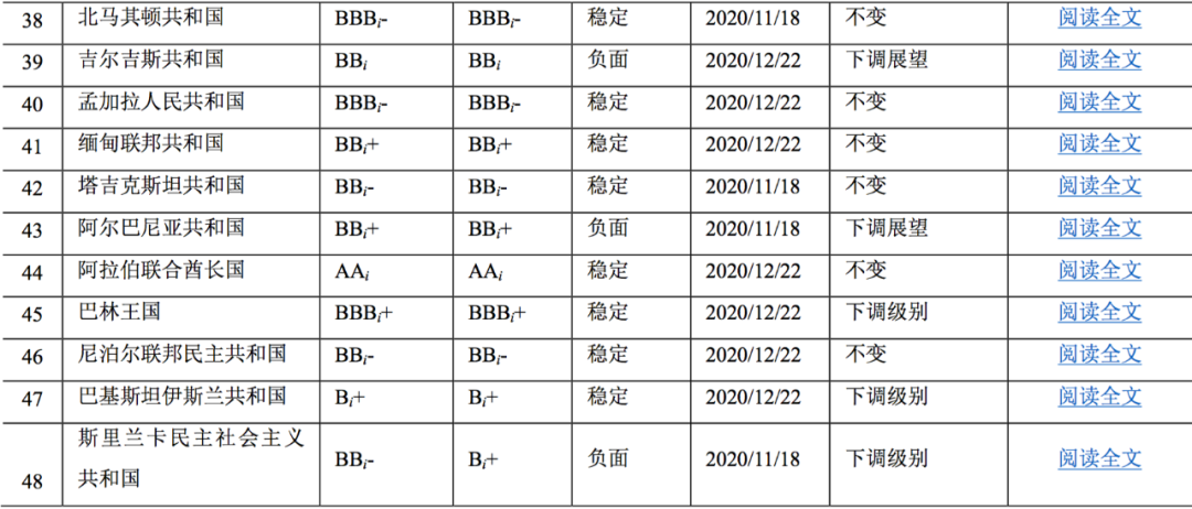 ?阿根廷:2020年4月長期本、外幣信用等級由CCCi下調至Ci,2020年9月長期本、外幣信用等級由Ci上調至CCCi,評級展望為“穩定”