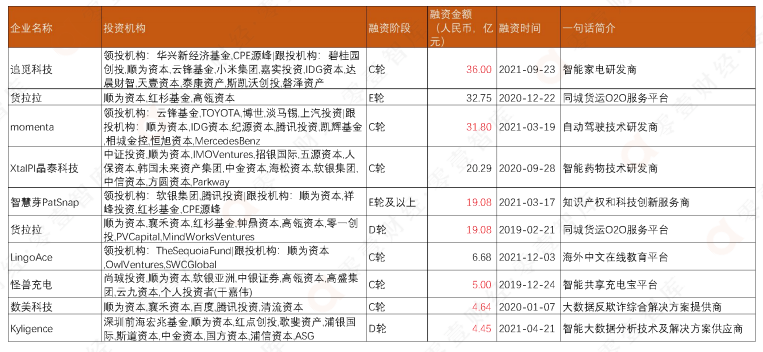 表:順為資本2019-2021年參與融資規模最大的十大數字科技企業