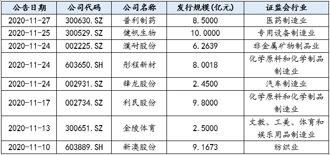 2020年11月可轉債董事會預案公告8只,發(fā)審委通過8只,股東大會通過20只,證監(jiān)會核準14只,具體情況見下表: