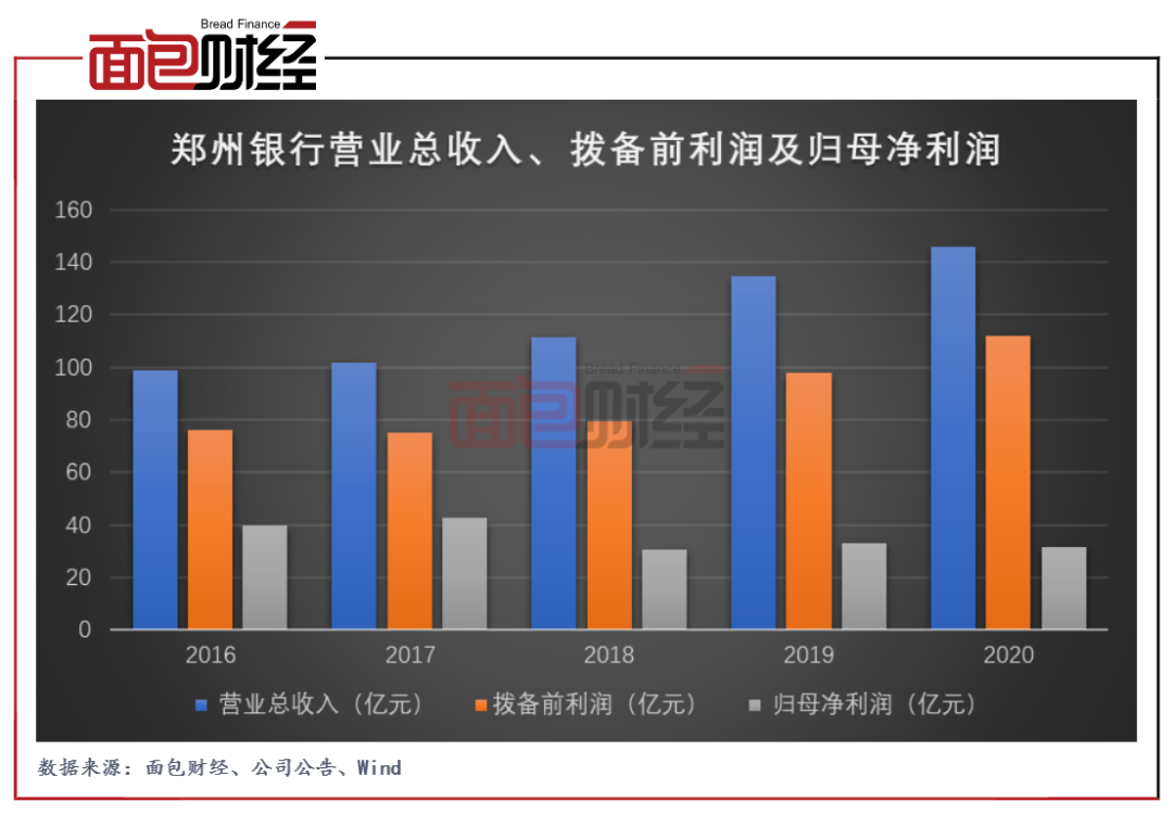 2020年,鄭州銀行實現(xiàn)營業(yè)收入146.07億元,同比增長8.30%;實現(xiàn)歸母凈利潤31.68億元;撥備前利潤人民幣111.97億元,同比增長14.22%。