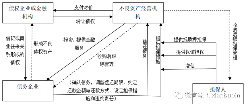 債務重組是針對出現流動性困難的企業,不良資產經營機構分別與債權人、債務人就還款金額、還款方式、還款時間等債權債務問題達成協議,通過更改債務條款,實行債務合并的方式,優化該類企業的資產負債結構、盤活企業不良資產,幫助企業渡過財務危機的一種不良資產經營模式,其基本業務流程如下圖: