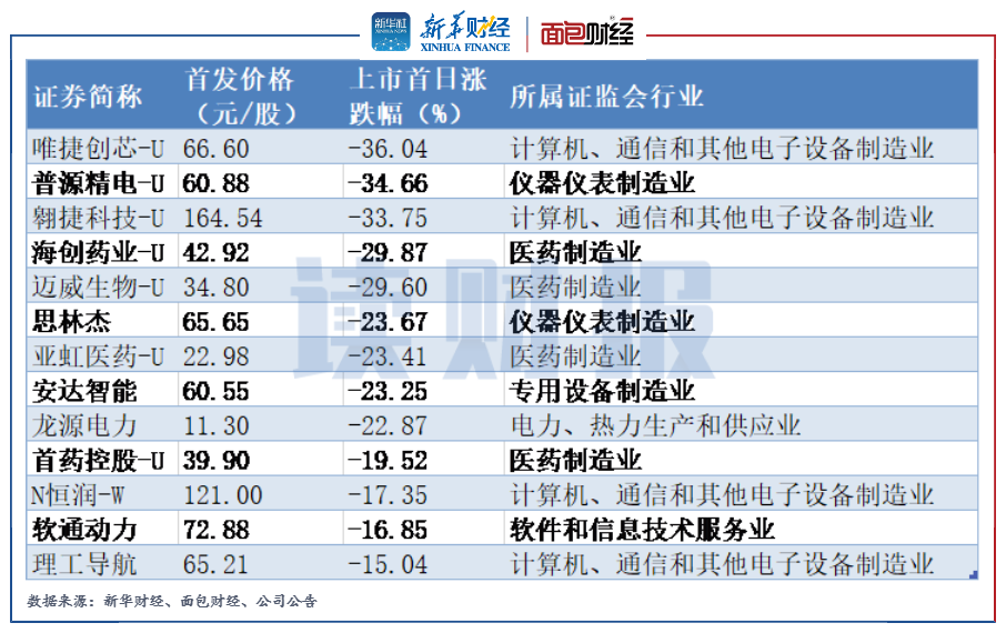 計算機通信、醫藥制造業新股破發數量和跌幅雙高