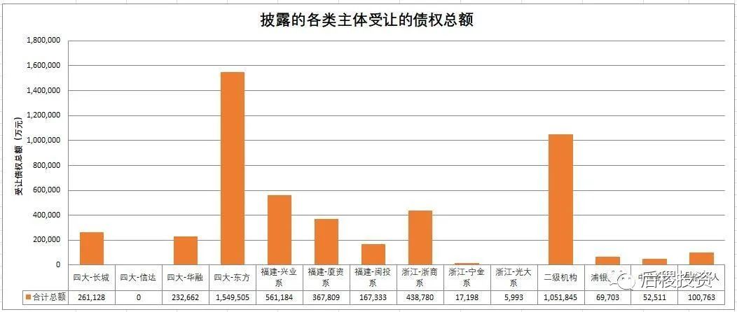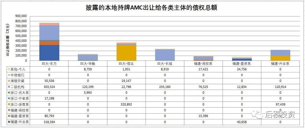 在東方的出讓總額中,有很大一部分是轉讓給了興業資管,信達的出讓總額中,也有很大一部分是轉讓給了浙商資管,加在一起規模達63億元,這部分不能算作福建市場對存量債權不良資產的消化。