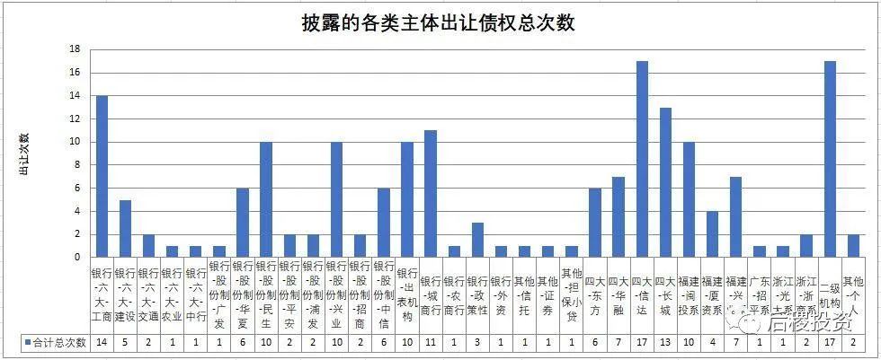 a、從銀行出讓規模上看,除傳統規模較大的工行外,城商行是出讓市場的主角,華夏銀行和民生銀行的處理力度相對也較大。