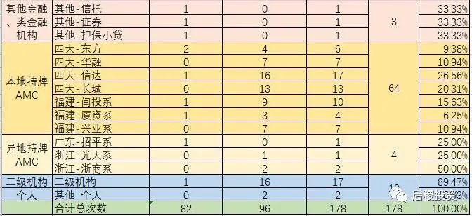 作為異地持牌AMC,浙商在福建的債權受讓來源主要是本地持牌AMC(主要是信達),而除異地持牌AMC的其他二級機構受讓總規模在100億以上,其他機構的受讓規模則均不大,這個規模與2018年相比差距不大。
