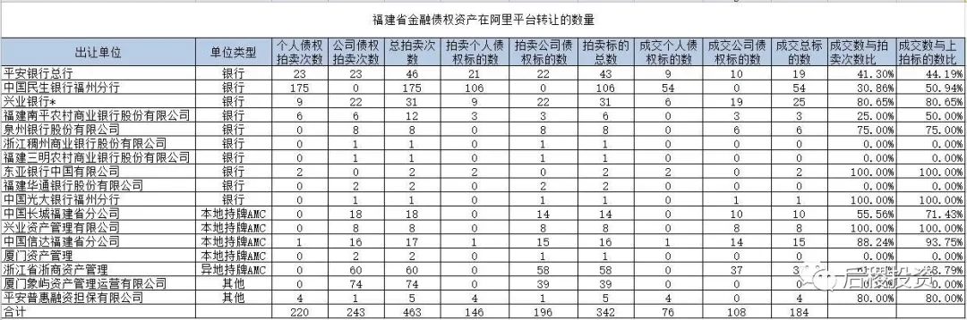 福建省金融債權資產在阿里平臺轉讓成交情況