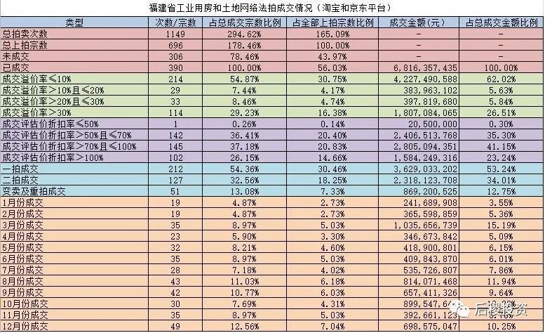 1、2019年福建省共上拍工業用房和土地共696宗,拍賣了1149次,成交了390宗,總成交額約68億元。即大約每3次拍賣中,有1次能夠成交,每1.78個上拍標的物中,有1個能成交,整體成交率一般。