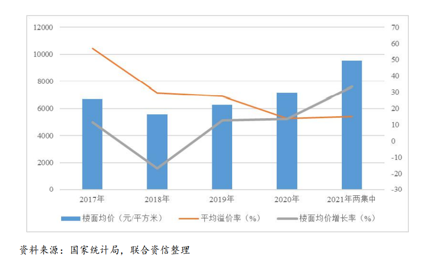 溢價率方面,2021年“兩集中”首批供地成交平均溢價率較2020年上升幅度不大,但其并不能反映真實拿地價格的變化以及成交熱度。一方面,土地出讓過程中的起拍價格的上升變相推升了實際的成交價格;另一方面,部分地塊達到溢價率上限之后,轉入“競配建”“競自持”階段,真實地價及成交熱度體現不甚明顯。樓面均價方面,2021年“兩集中”首批供地樓面均價增幅已達近年新高,若剔除配建及其他投資條件影響,真實土地價格增速將進一步上升。