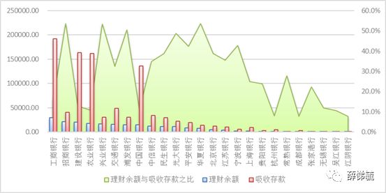 圖2.2017年部分上市銀行吸收存款、理財余額以及理財余額占其吸收存款的比重