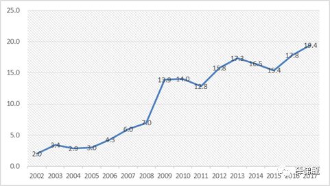 圖6.2002-2017年我國歷年社會融資規模