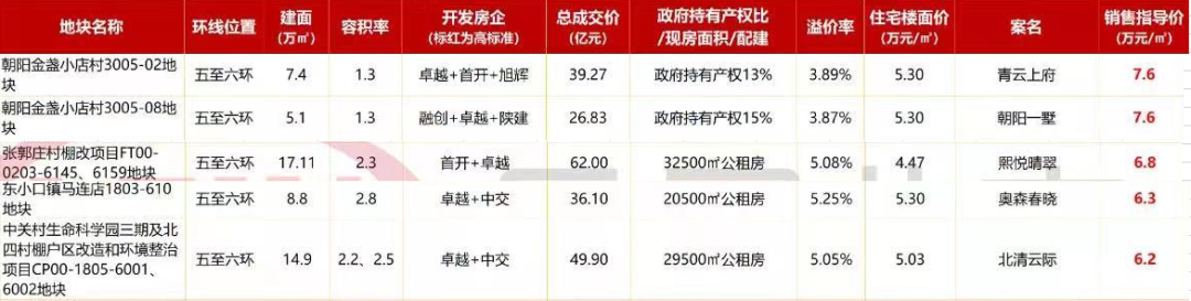 再比如,卓越聯合體奪下的昌平區中關村地塊,樓面價高達5.32萬/平,但售價上限6.3萬/平。銷投比1.18。