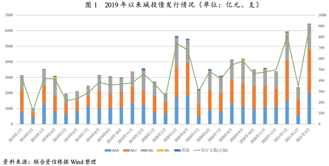 受2021年再融資需求擴大及市場情緒修復的影響,一季度城投債發行數量及規模大幅增長。