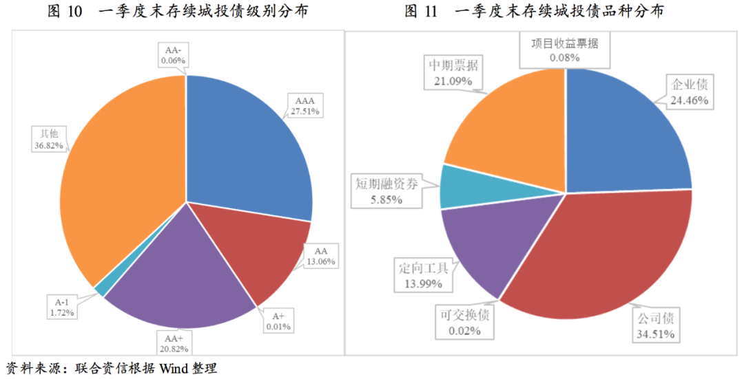 從區域分布看,江蘇省城投債余額仍居首位;從信用級別看,存續城投債以高級別為主;從債券品種看,存續城投債以公司債和企業債為主。