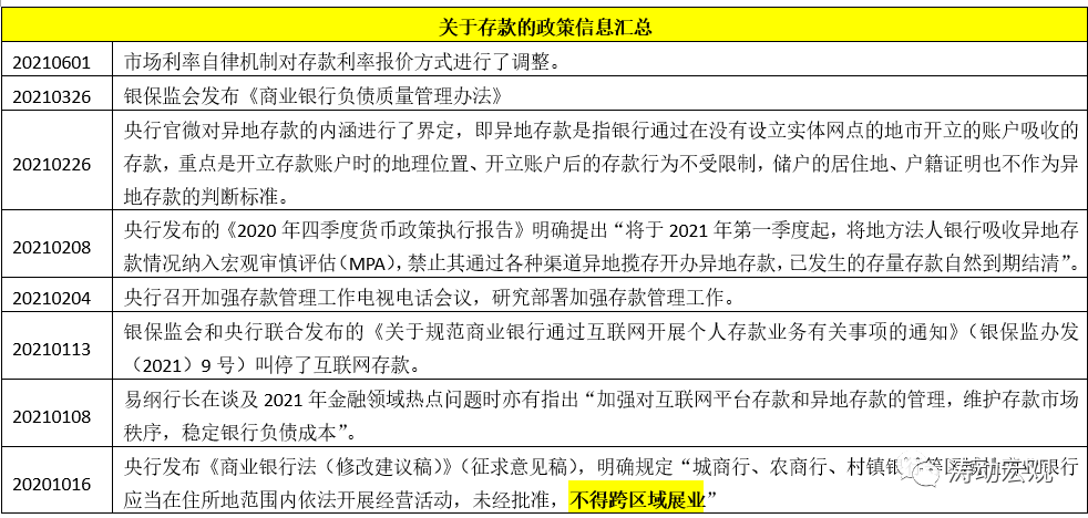 除通過信貸投向引導、規范互聯網貸款等資產端舉措外,政策層面亦聚焦于負債端,且對負債端約束開始由之前的廣義同業負債聚焦于存款端。